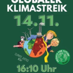 Während die Regierungschefs vom 10. bis zum 21. November auf der Weltklimakonferenz über neue Klimaziele sprechen, zeigen wir gleichzeitig am 14.11. überall auf der Welt auf den Straßen: Unsere Zukunft ist nicht verhandelbar – Klimagerechtigkeit jetzt! Wir brauchen endlich effektive, verbindliche Klmaschutzmaßnahmen und wir nehmen einen fossilen Rollback nicht einfach still hin.Deswegen den 14.11. schon…