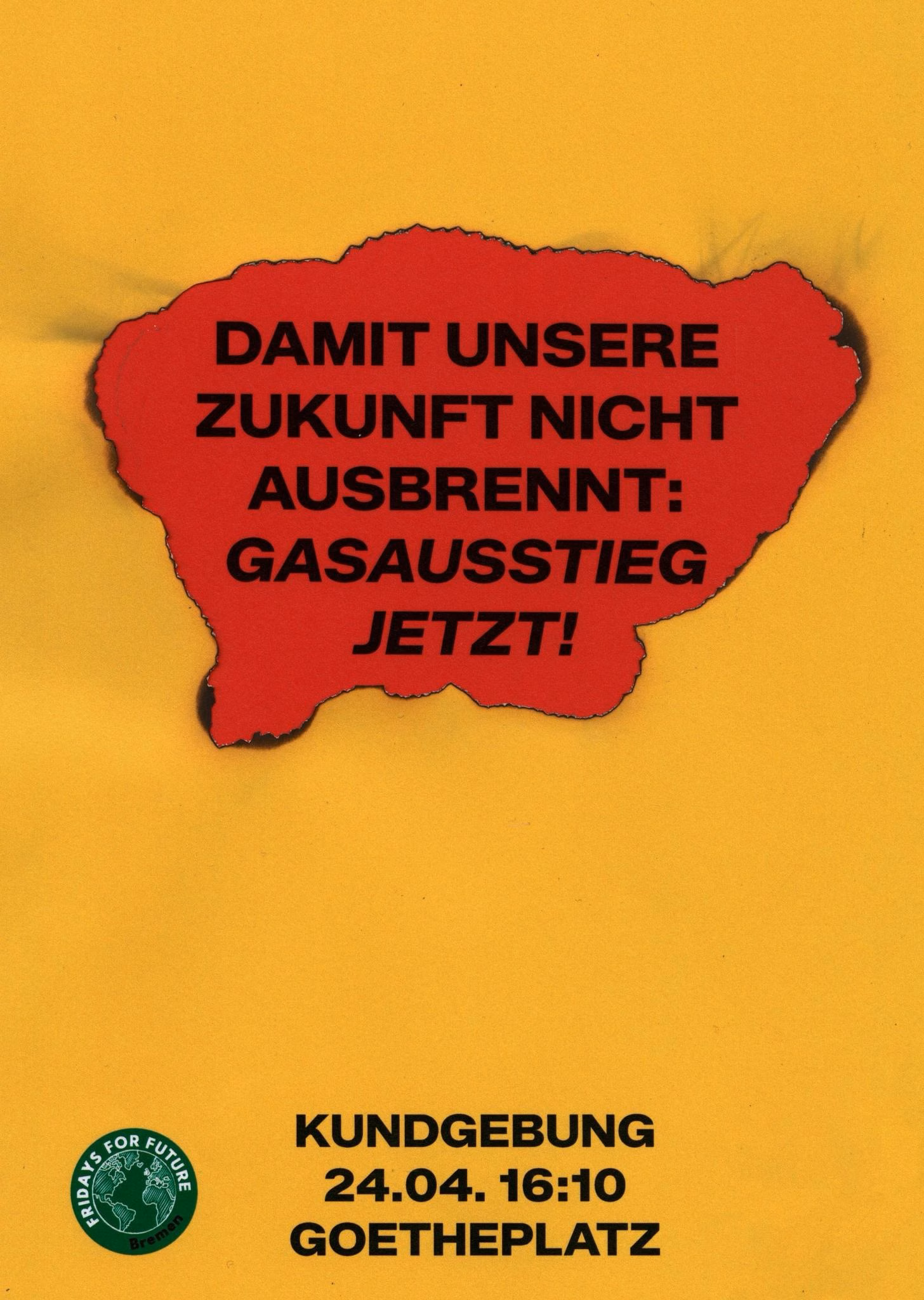 Am 24.04. treffen wir uns um 16:10 Uhr auf dem Goetheplatz und sind gemeinsam laut, damit unsere Zukunft nicht ausbrennt🔥 💚