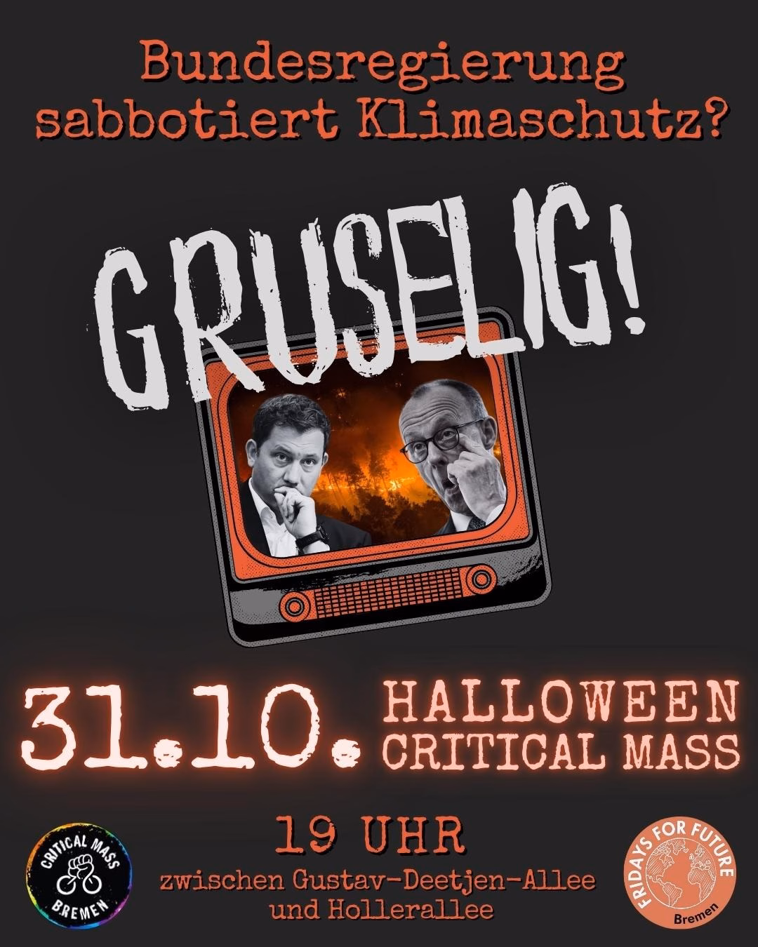 Am 31. Oktober um 19 Uhr an der Ecke Hollerallee und Gustav-Deetjen-Allee findet die Halloween Critical Mass statt! 🎃🚴♀️ Die…